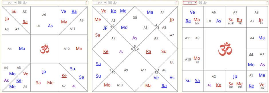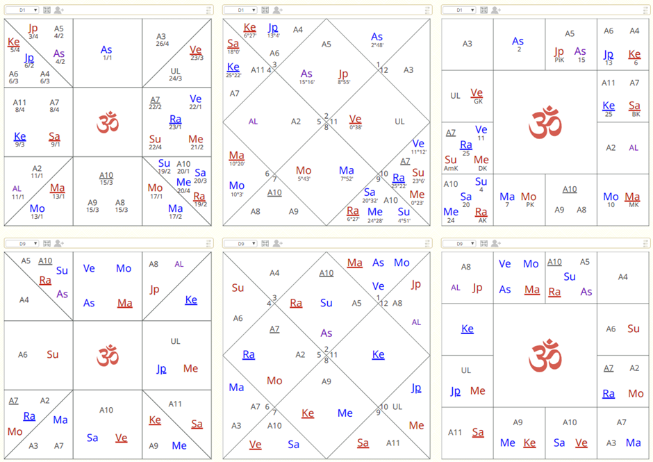 As we saw in these cases, Kaṇṭaka Śani is a very dangerous Doṣa. However, for some huge event, Kaṇṭaka must be repeated in some divisional chart. In these cases, we consider only the exact moment, but after every Śani attack, the person needs a long time to heal the wounds. After all, Śani is Kāla – Time.
